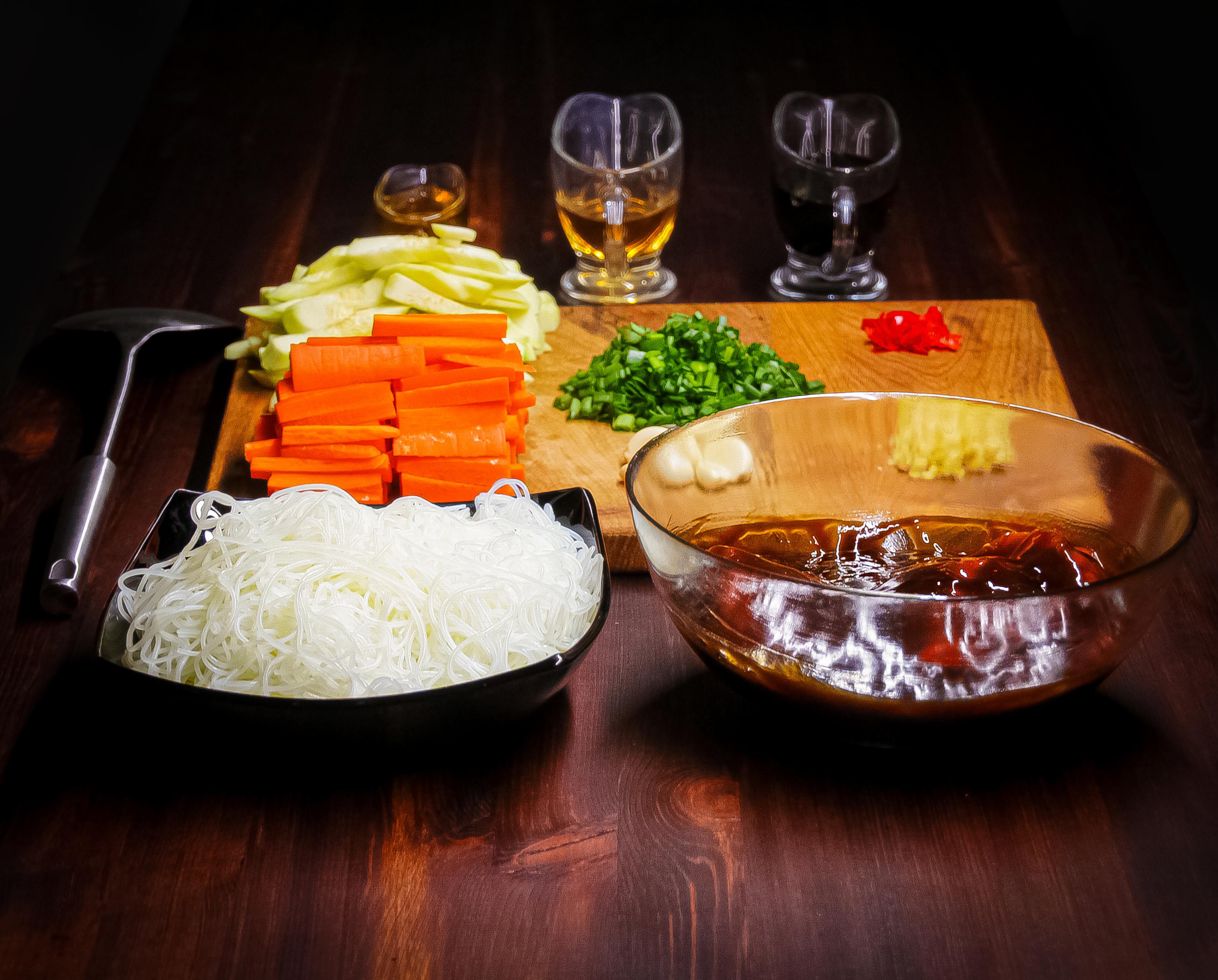 В качестве гарнира мы будем использовать фунчозу, поэтому её тоже нужно будет приготовить.