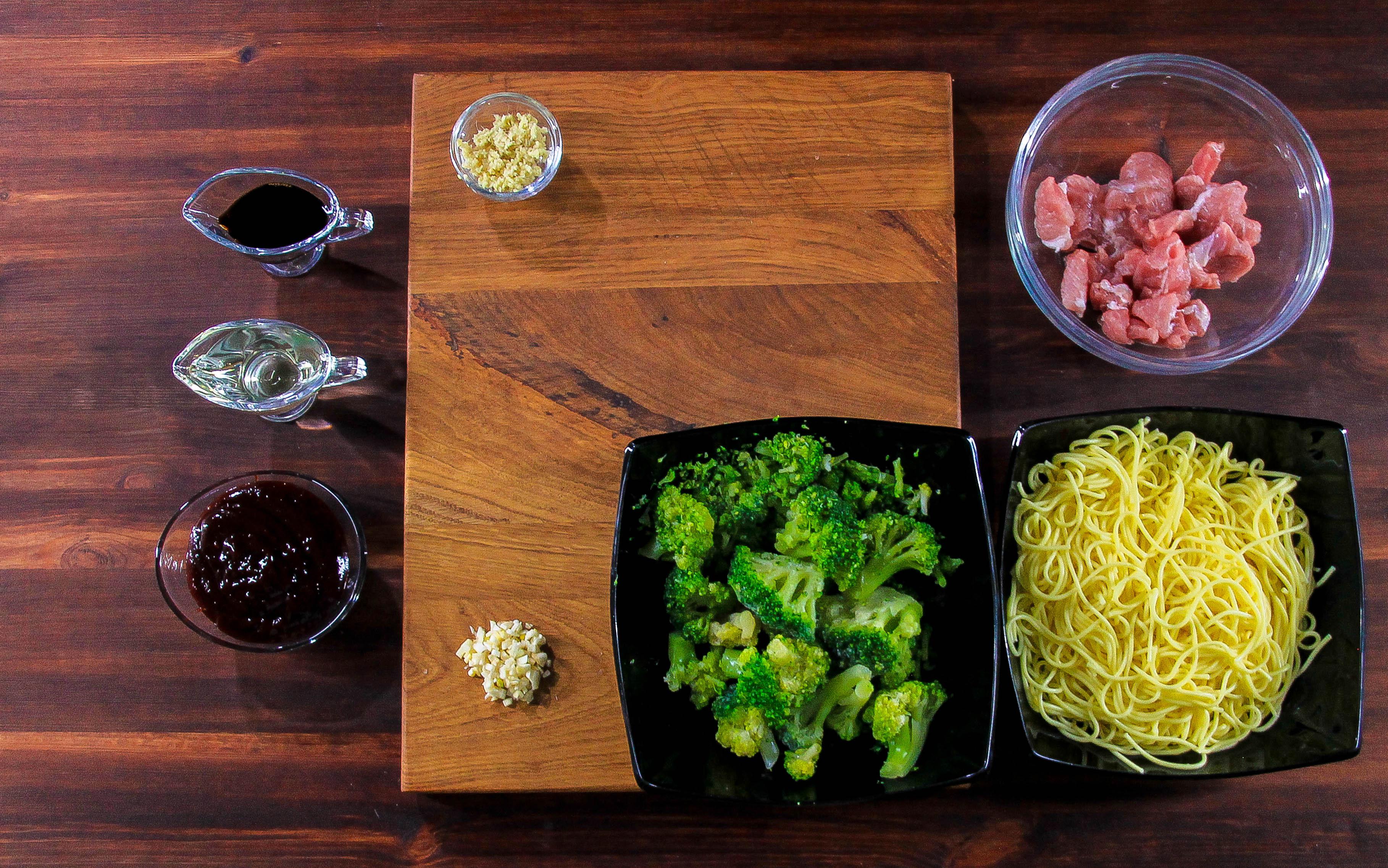 1) Начинаем с мяса. Смешиваем его с четырьмя столовыми ложками соуса хой шин в отдельной ёмкости и оставляем на 15 минут. Оставшийся соус смешиваем с соевым.