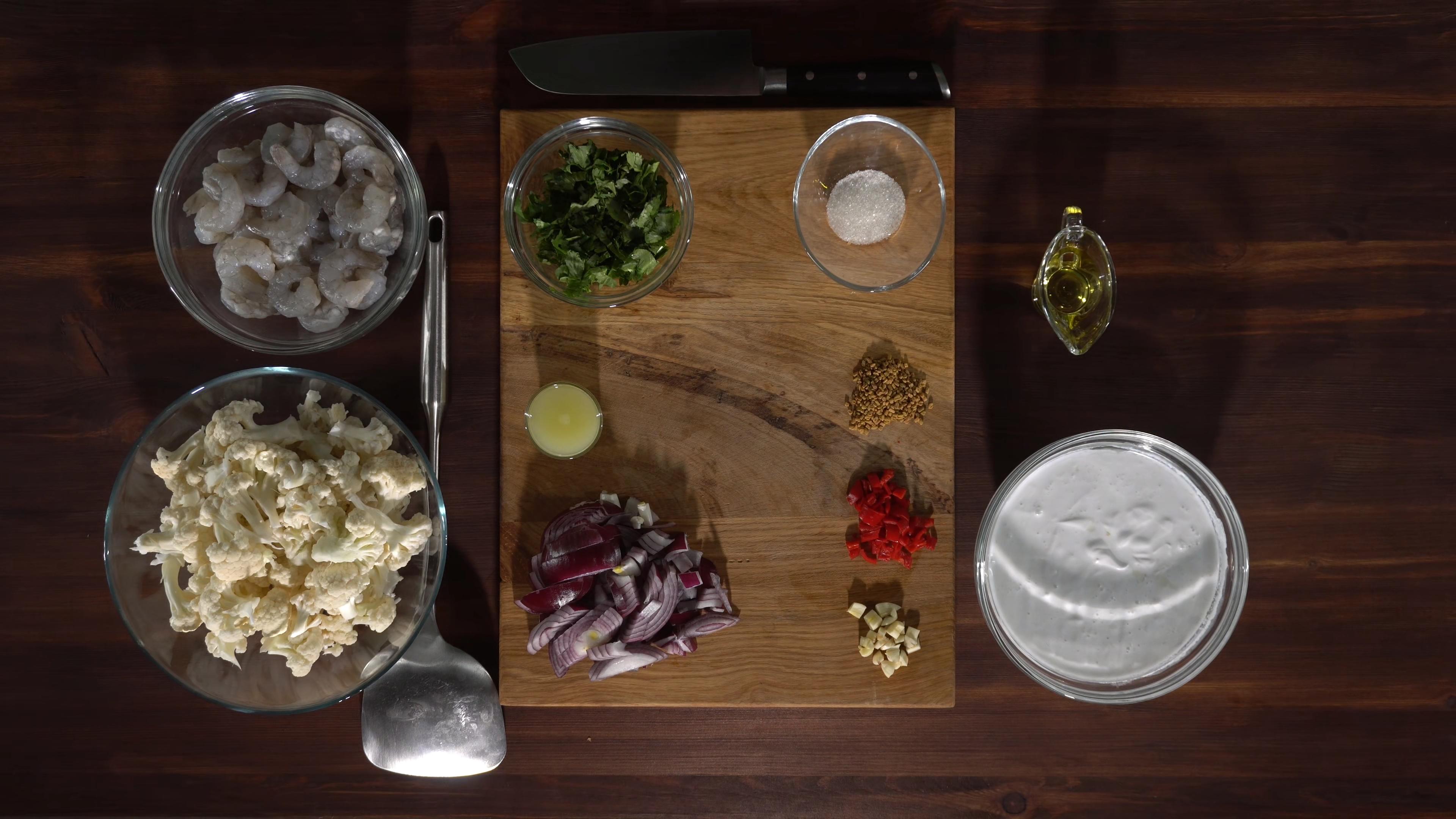 Для начала мы немного промаринуем креветки в соке лайма, для этого просто смешаем сок лайма с креветками и уберём в сторону.