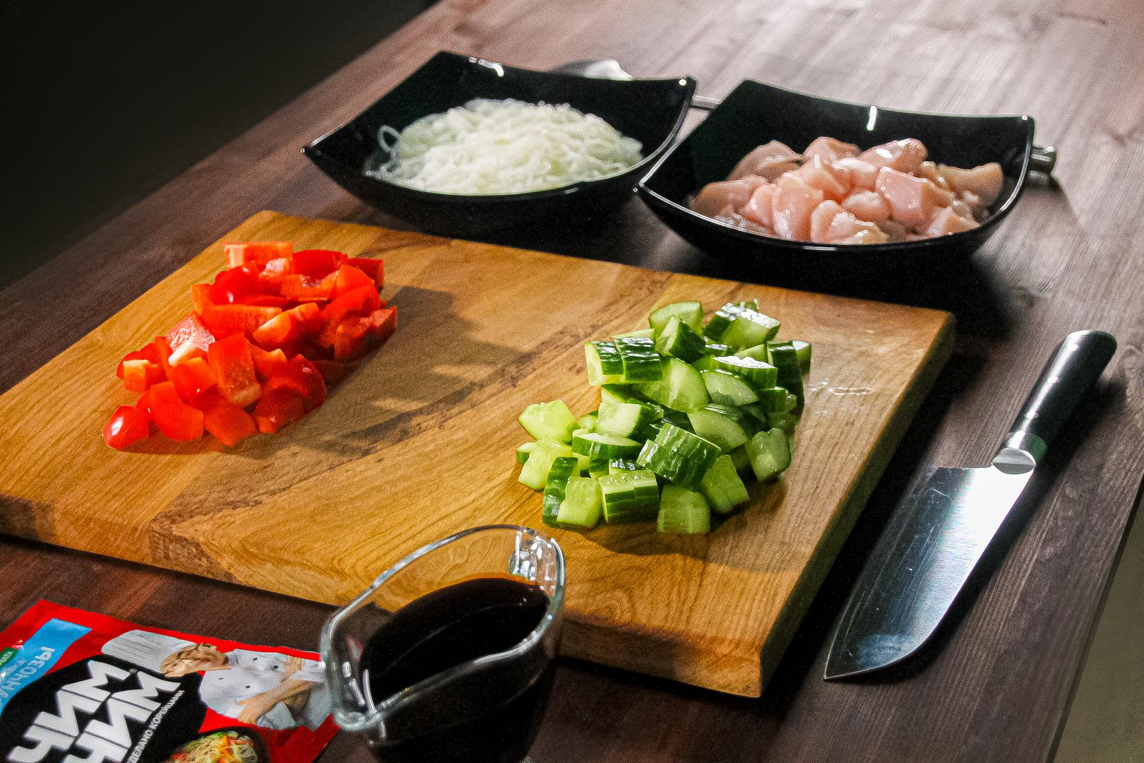 В соевом соусе мы будем обжаривать курицу, поэтому объём выберите по своему вкусу. Если добавите больше – соус пропитает лапшу и добавит блюду вкуса.