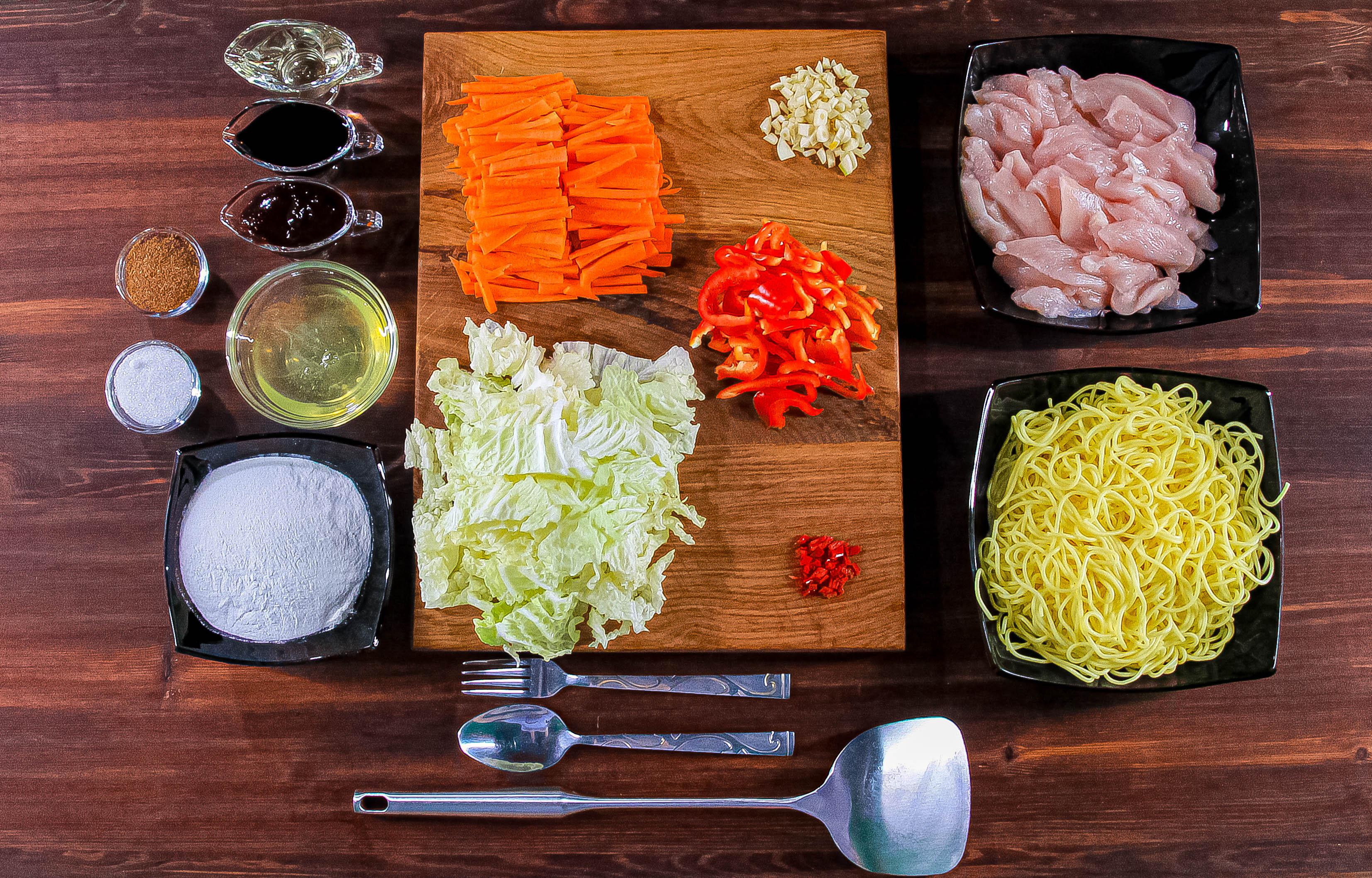 Растительное масло – 2 столовых ложки для лапши и ещё некоторое количество для курицы.
