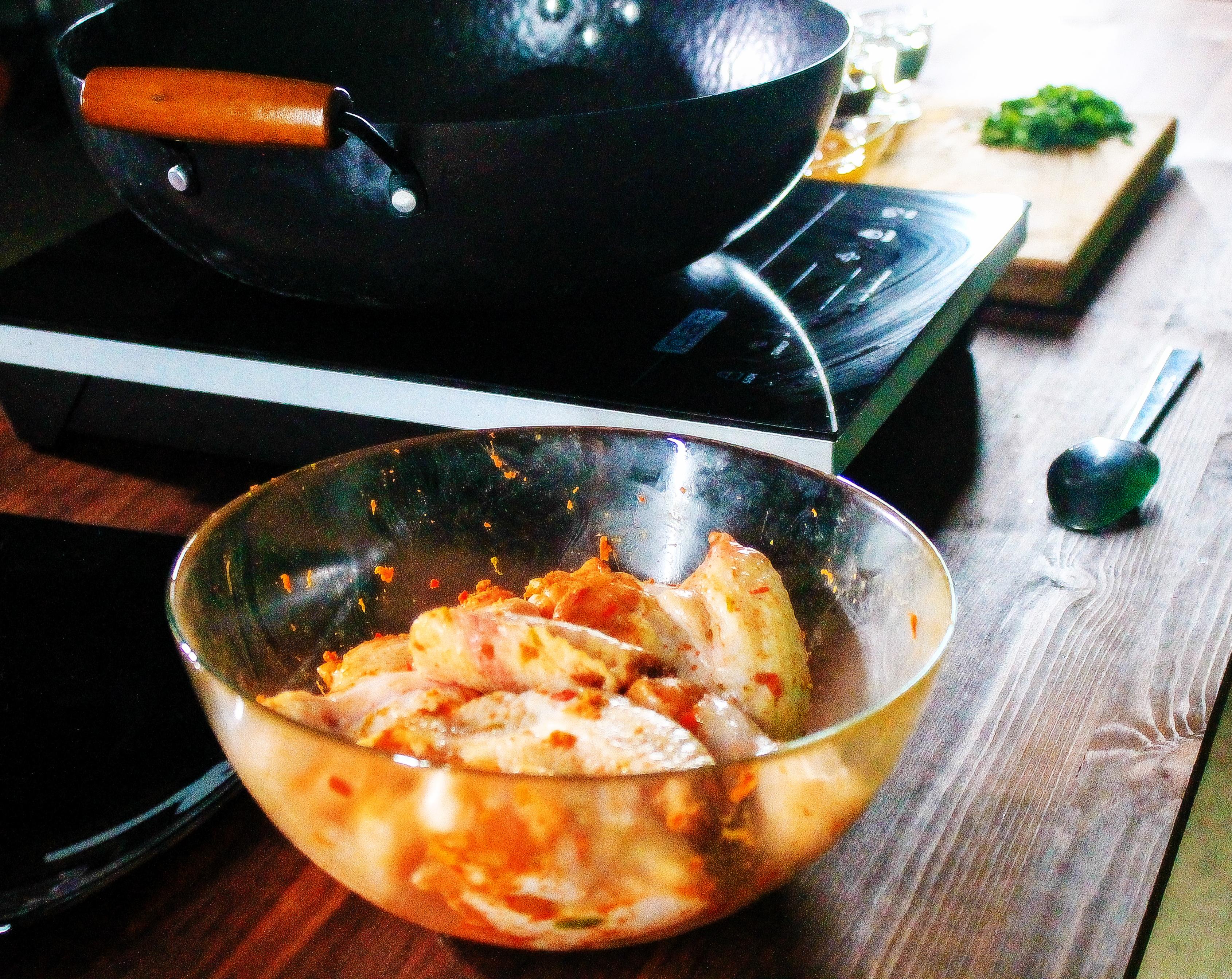 Добрый день, дорогие друзья! Сегодня мы наконец то приготовим в воке блюдо, в составе которого и правда не будет ничего необычного. Всё что вам понадобится вы сможете найти в ближайшем супермаркете. Это отличный фингерфуд, который сделает ваши пальцы липкими от глазури, но оно того стоит. Итак – острые куриные крылья в меду.